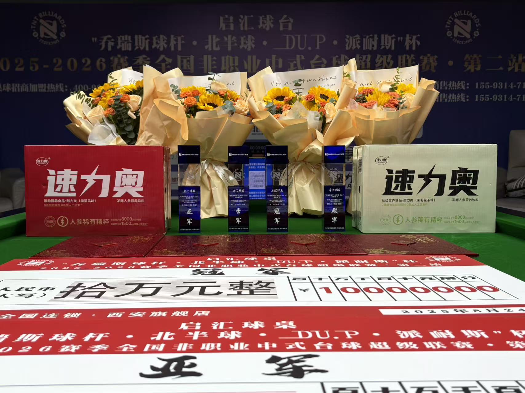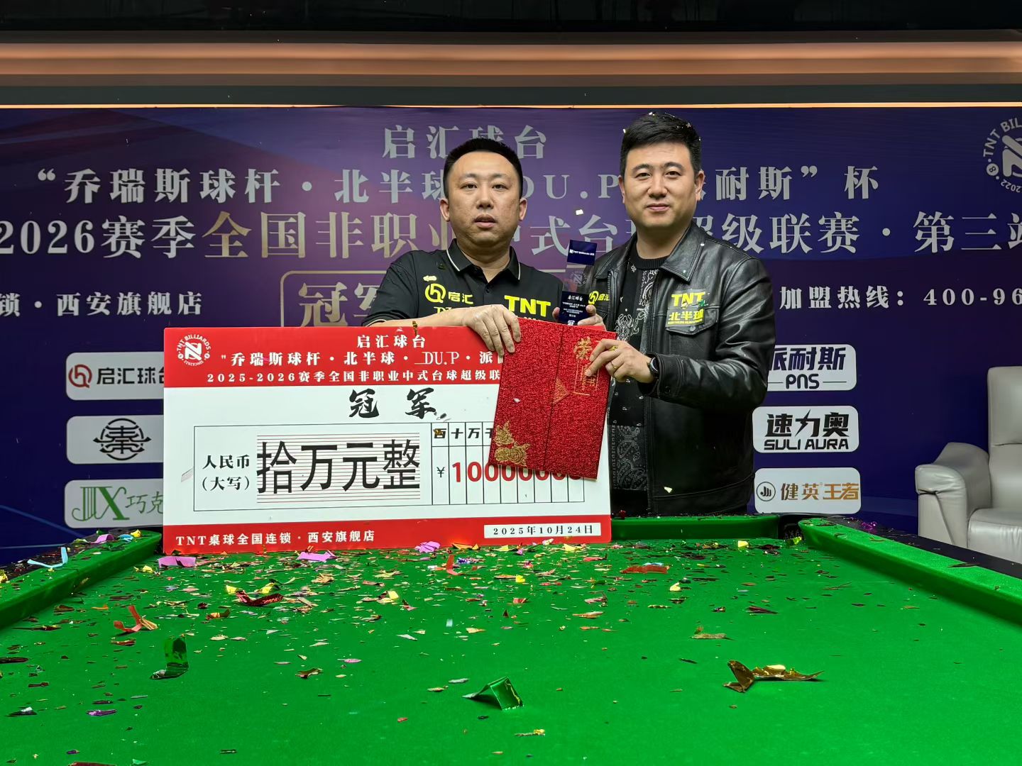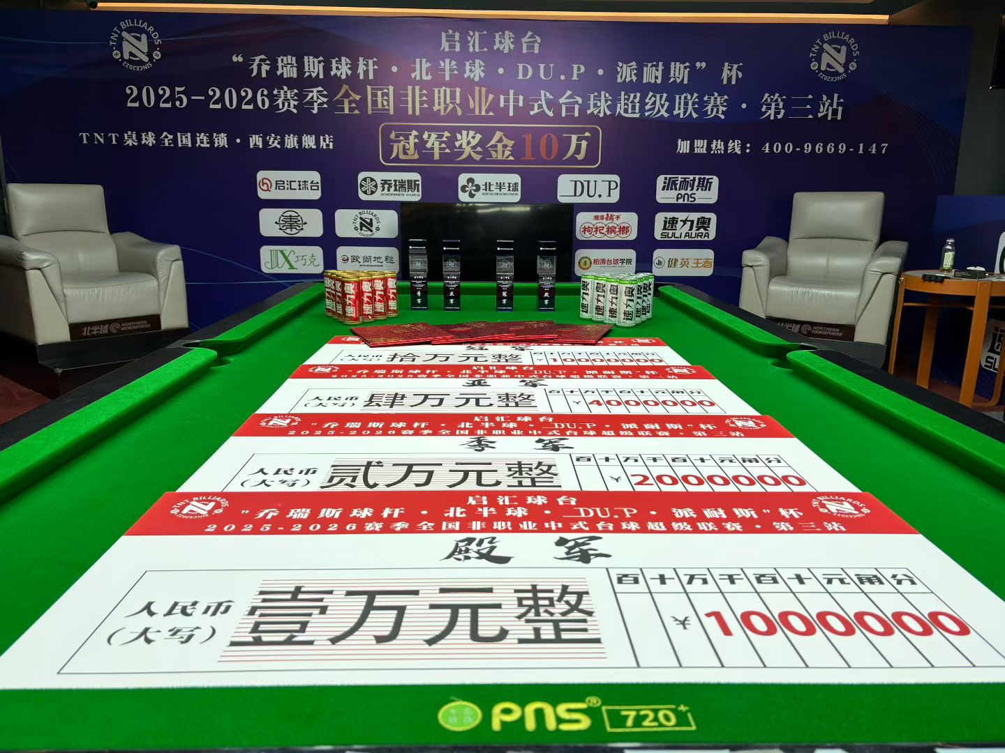 启汇球台 “乔瑞斯球杆・北半球・DU.P・派耐斯” 杯 2025-2026 赛季全国非职业中式台球超级联赛・第三站于全国最大台球综合体之一TNT 桌球举办!历经 8 天(10.17-10.24)激烈角逐,最终冠军得主捧走 10 万元现金大奖,用精准走位与稳定发挥诠释了台球运动的竞技魅力,现场每一次进球都引来全场喝彩。
